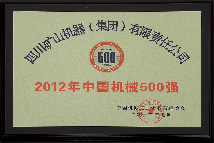 2012年,由中國機(jī)械工業(yè)企業(yè)管理協(xié)會主辦、機(jī)械工業(yè)經(jīng)濟(jì)管理研究院和世界經(jīng)理人集團(tuán)聯(lián)合承辦的“中國機(jī)械500強(qiáng)”榜單上,四川礦山機(jī)器(集團(tuán))有限責(zé)任公司位列第400位。川礦集團(tuán)作為省裝備制造業(yè)骨干企業(yè),將不斷夯實基礎(chǔ),提高企業(yè)自主創(chuàng)新,提升質(zhì)量管理和科技創(chuàng)新水平,為四川經(jīng)濟(jì)社會發(fā)展作出貢獻(xiàn)。