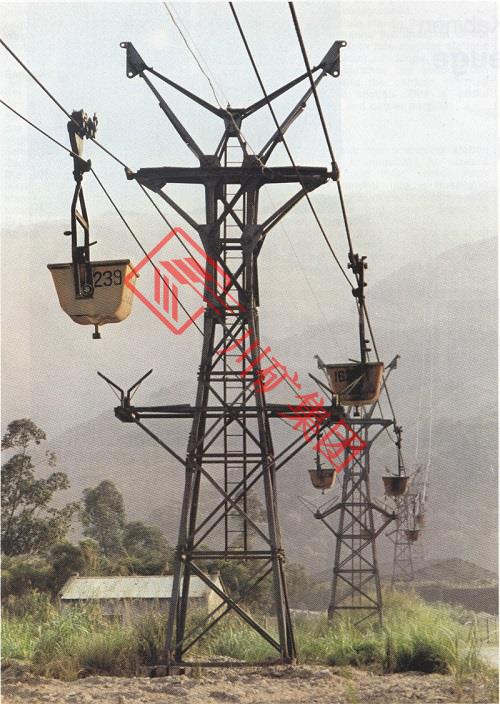 1、復線(支索、曳索各一)往復式貨運索道系統(tǒng):線上共有二個吊桶,左右各一個于線上往復行駛。